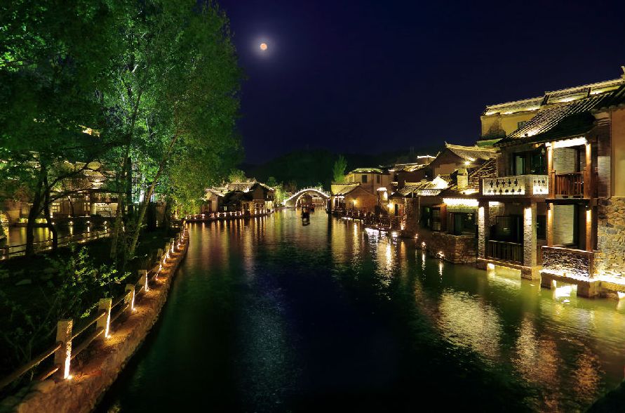 古北水镇夜景堪称北京一绝,全新重磅打造长城脚下的夜游“八大名玩”:登长城,提灯夜游司马台;品长城,城下湖畔精致晚餐;望长城,摇橹长城下;赏长城,星空温泉絮语;聆长城,浪漫水舞秀;宿长城,夜宿长城脚下;戏长城,戏水长城脚下;醉长城,山顶品酒观星。这个基于北方水文化建造而成的小镇,正在成为北京夜游时尚新地标,吸引越来越多年轻人及国际友人前来度假休闲,这里也是摄影家和美食爱好者的天堂。