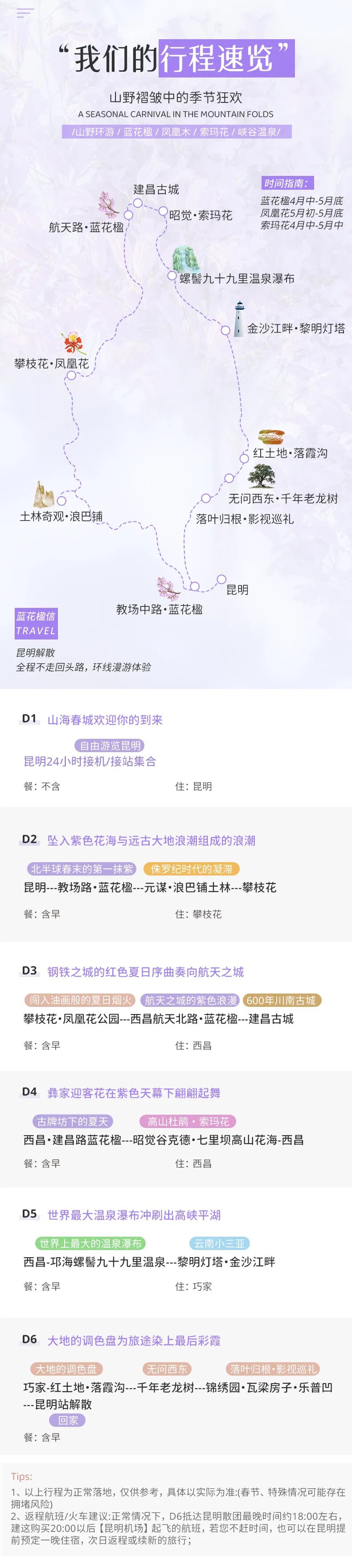 6天5晚|一年一度三城花季漫游,从云南跨越四川,昆明&西昌双城蓝花楹盛放,攀枝花凤凰花如火灿烂,索玛花在山野盛放,元谋土林大地奇观,小众浪漫之旅。
