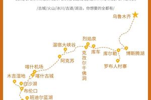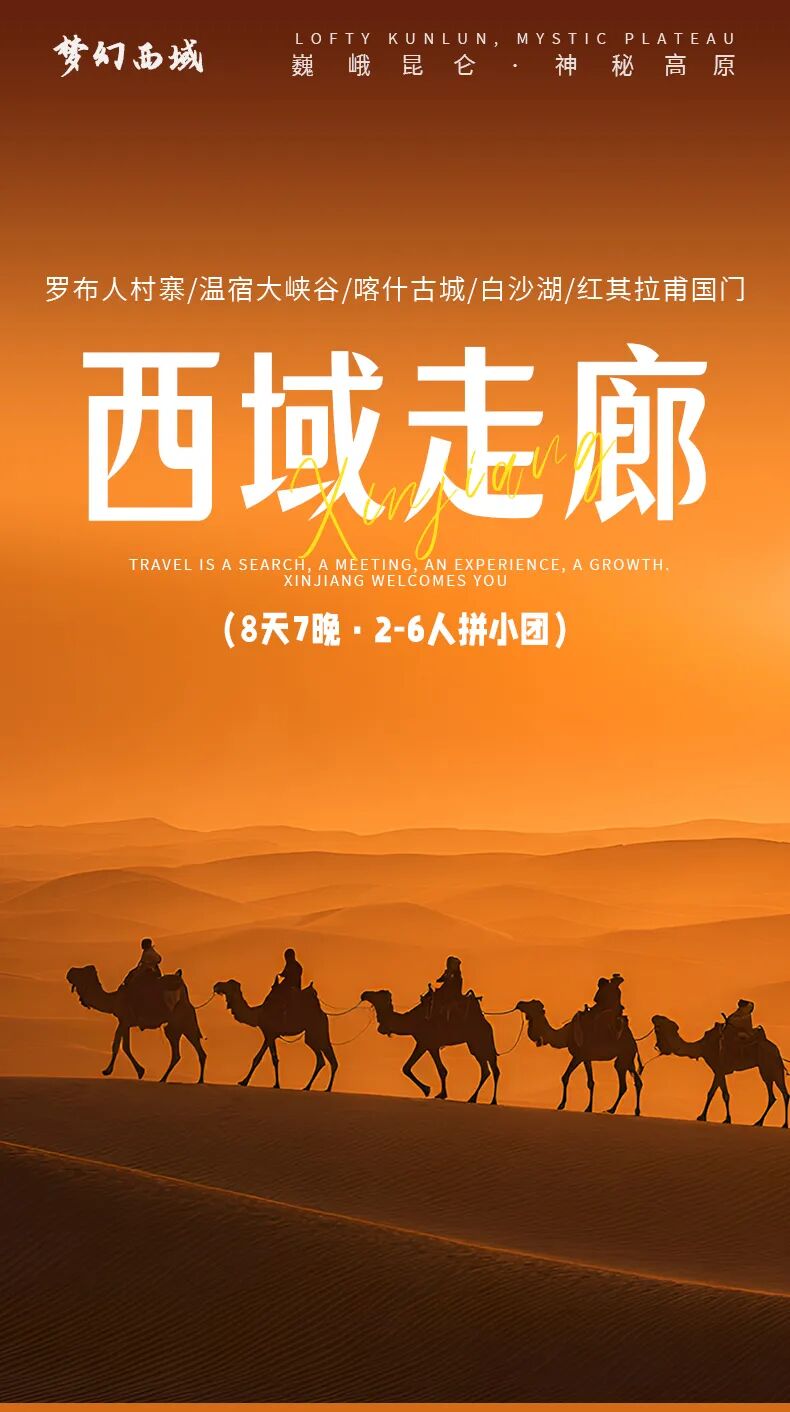 乌鲁木齐/博斯腾湖/罗布人村寨/烈焰泉/千佛洞/温宿大峡谷/喀什古城/维族家族做客/木吉火山口/白沙湖/瓦罕走廊/红其拉甫国门/盘龙古道/班迪尔湖/喀什 8天7晚西域之旅