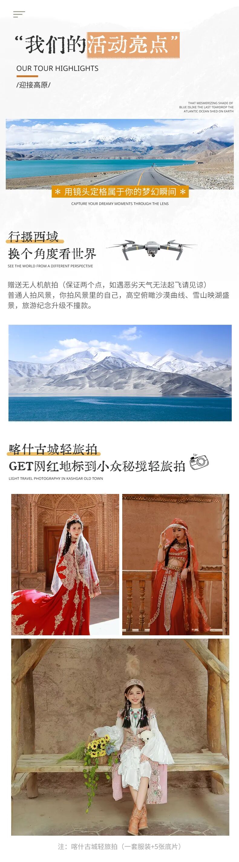 2. 赠送喀什古城轻旅拍(一套服装+5张底片);