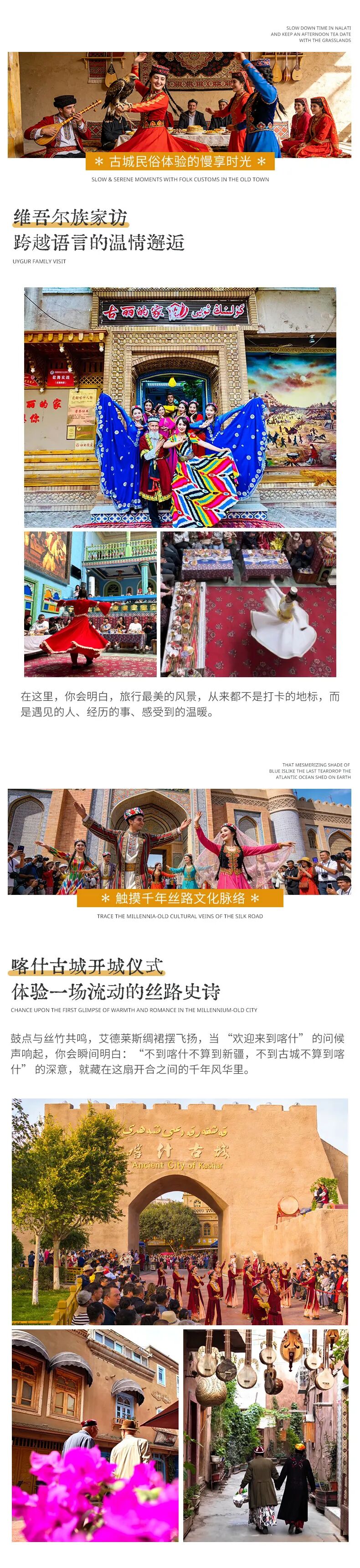 14:30【喀什古城】的夯土街巷藏着最温润的丝路烟火。走进一户【维吾尔族人家做客】,才算真正触摸到古城的灵魂 —— 这里没有商业化的表演,只有 “茶暖馕香” 的真实生活,是一场跨越语言的温情邂逅。【古城轻旅拍】的第一步,是选一套心仪的服饰。喀什古城是天然的摄影棚 —— 蜿蜒的黄土街巷、色彩斑斓的门窗、挂着艾德莱斯绸的商铺、戴着花帽的行人,每一处都藏着不重样的风情。