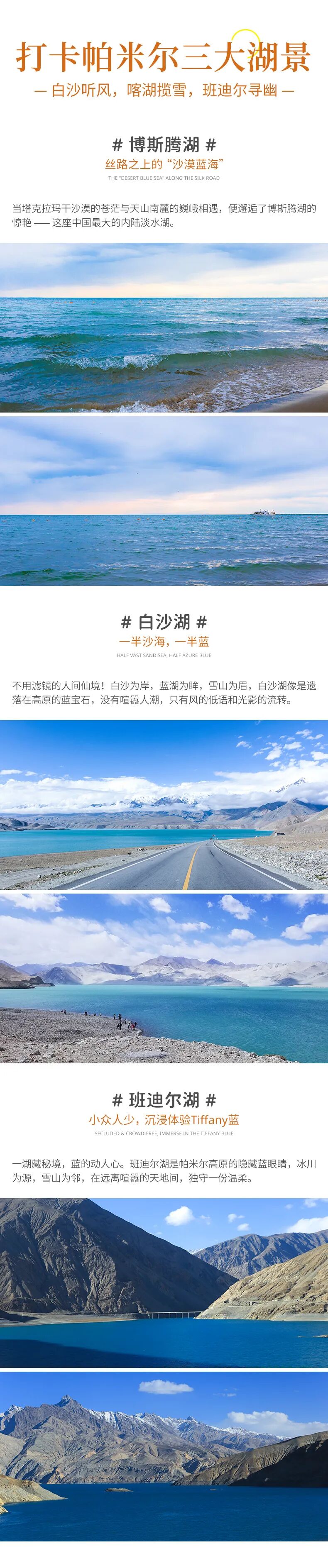 塔县-盘龙古道(40KM,约0.5H)-班迪尔湖(60KM,约1.5H)-喀什解散(320KM,约5H)