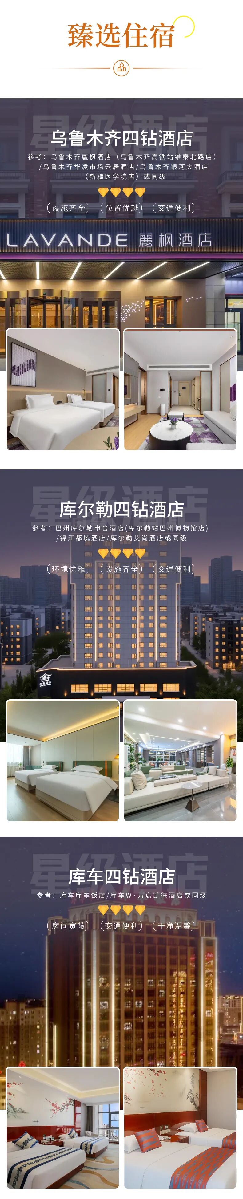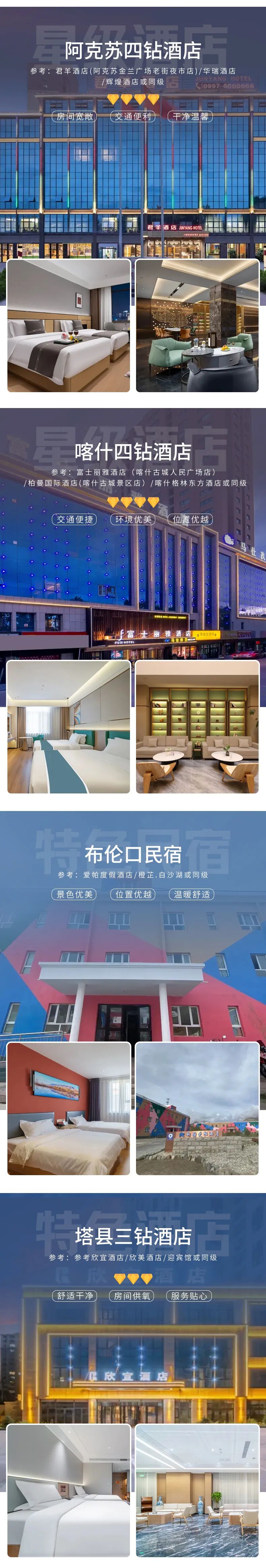 备注:钻级标准参考携程钻级标准,未挂星。新疆经济较为落后,酒店较南方酒店略差,敬请谅解;