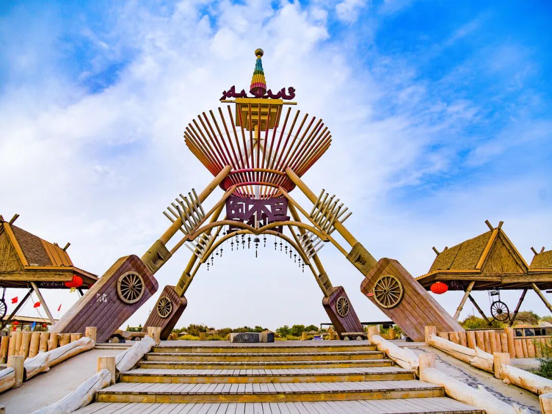 11:30 抵达【罗布人村寨】,罗布人村寨是罗布人最后的家园,他们是新疆最古老的土著居民之一尉犁县人民。村寨正门的人头造型与鱼图腾,暗含着罗布人对鱼的崇拜。走进村寨,阿不旦广场是必到之处,在这里,你可能会偶遇百岁罗布老人,听他们用罗布方言讲述古老的传说。参观罗布人民俗展厅,能看到他们的编织衣物、狩猎工具,见证其生活变迁。而罗布人的婚俗展示,也别具一格,充满了独特的民族风情。