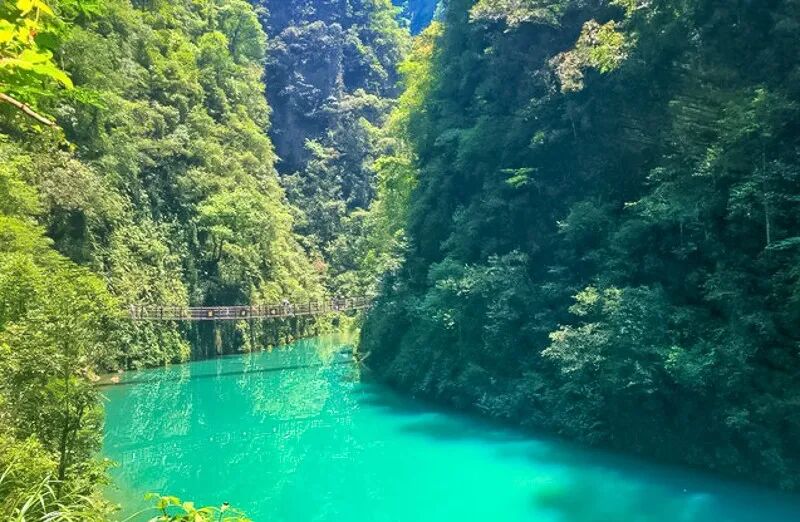我们乘车前往【屏山峡谷】,屏山峡谷被誉 为“中国仙本那”,这里是恩施旅游必览之地。屏山四周峭壁悬空,碧水环绕,青 山翠绿,在峡谷中的水面游弋,抬头看去,四周峭壁耸立,溪流环绕。
