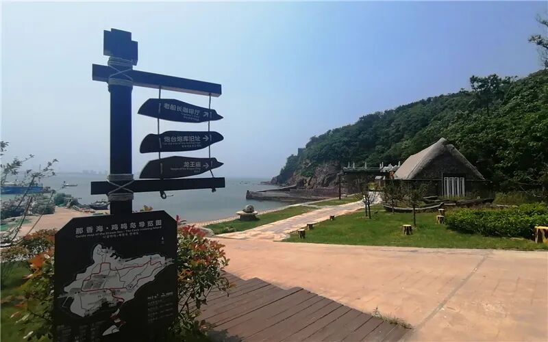 - 早起前往鸡鸣岛码头,乘游船前往鸡鸣岛,文艺小清新网红打卡:悬崖咖啡厅、悬崖教堂、灯塔、老街、龙王庙旧址、祈福古树、炮台炮库旧址、海岛渔村、海岛奇礁等。这里距今有近400年历史。海岛面积约0.31平方公里,因形状酷似雄鸡而得名。因节目《爸爸去哪儿》火遍全国,每年的5月—10月是鸡鸣岛海岛游的季节。在鸡鸣岛,听大海潮起潮落,与青山流云同眠,沉浸于海岛避世桃花源般的惬意的慢生活中,大家可以自由打卡。中午适时乘船出岛。