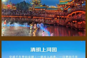 清明上河园是根据宋朝名画《清明上河图》为蓝本而建造的大型宋代文化实景主题公园。高度还原清明上河图布景,由八个功能区和四个文化区组成。南苑再现了北宋东京的市井百态,北苑则表现宋代皇家园林和宫廷娱乐,园内的宫廷景观建筑金碧辉煌。园内工作人员皆穿着宋代服饰,仿佛穿越时空一般,除此之外还有精彩的场景演出和民俗表演。