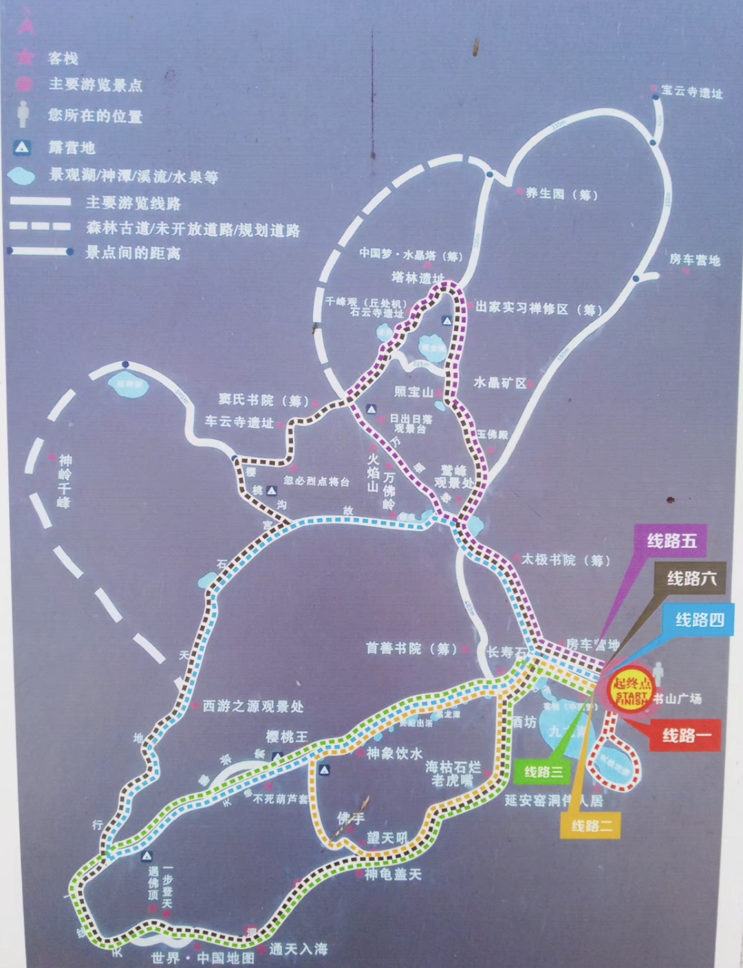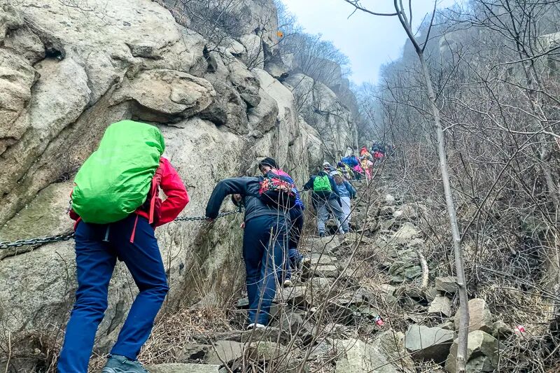 景区大门海拔150米,万福梯顶端海拔420米,超过200米的连续爬升,几乎没有可以歇脚的地方,喜欢爬山的人一定不要错过,南线最高处海拔550米,南线400米以上的地方坡度非常大,再加上路面损毁比较严重,很难走,需要手脚并用才能缓慢前行,适合徒步登山。