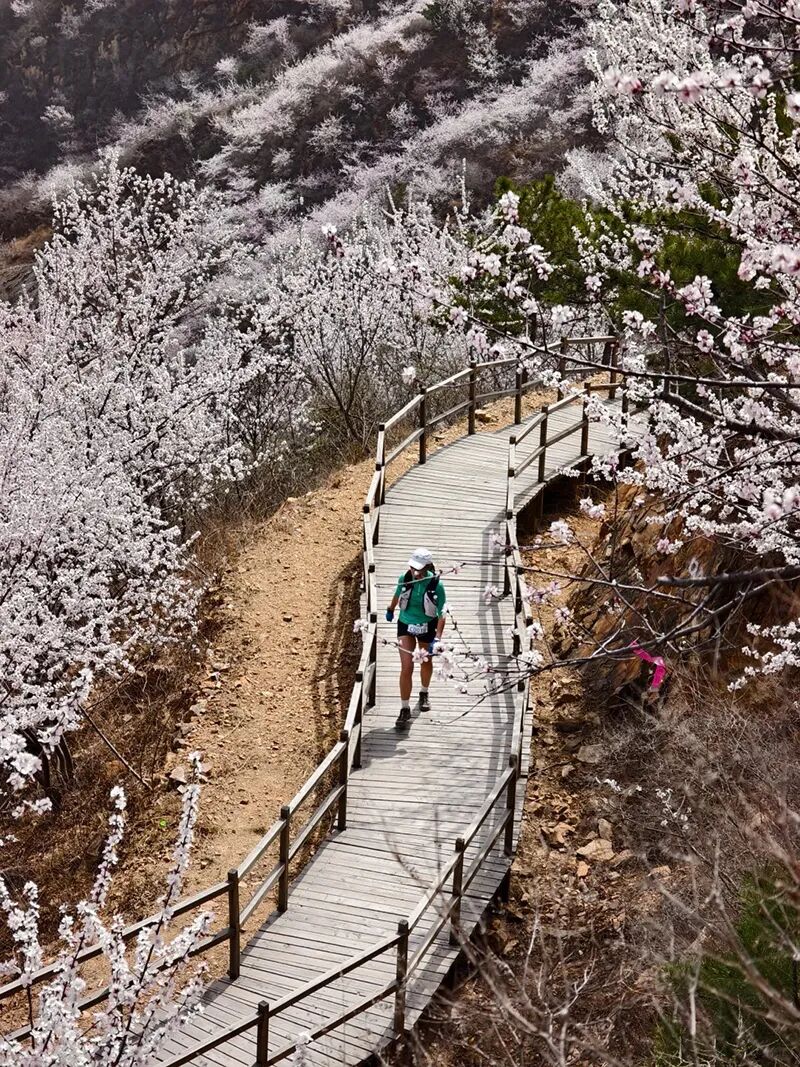 10:30 | 到达徒步起点,在领队带领下开始穿越。 望宝川至东水峪环线,是一条贯穿燕山腹地原始峡谷的十公里徒步路线。线路以北京市昌平区望宝川村为起点,途经明代古长城遗迹、野生桃花谷、丹霞地貌区,最终抵达东水峪古村落遗址并折返,形成一条海拔攀升约四百米的环线。抵达首个观景台,可俯瞰山谷初现的粉色花海。路径沿溪涧蜿蜒,两侧丹霞地貌赤壁耸立,与野生桃林形成强烈色彩对比。春季两侧山桃、山杏夹道,三月初至四月初为最佳花期。 |