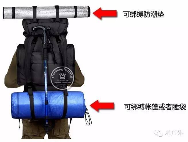 帐杆沿着背包侧面靠近背部的位置放置(这时背包的隔层要放松,以使帐杆能插到背包底部)。帐杆也可以外挂在背包两侧,但在走丛林时最好还是收在背包里面,这主要是为了更好的保护帐杆。