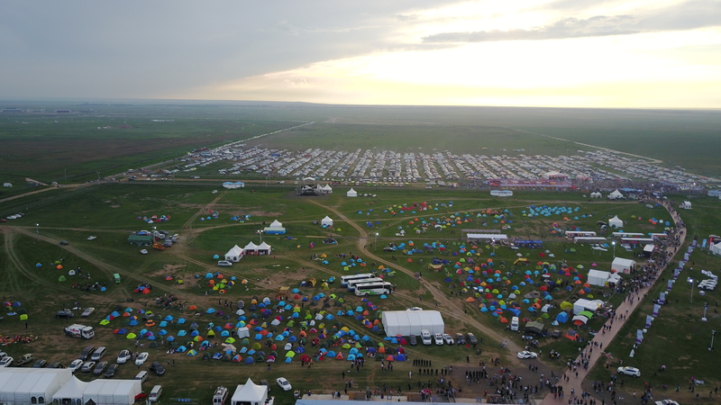 航拍可以看到,舞台搭建在草原之上,周围全是车和帐篷,我们到张北已经是2点多了,其实节目已经开始了,不过没有大咖,我们只能先找车位和换取门票,找个好位置扎帐篷休息一下。