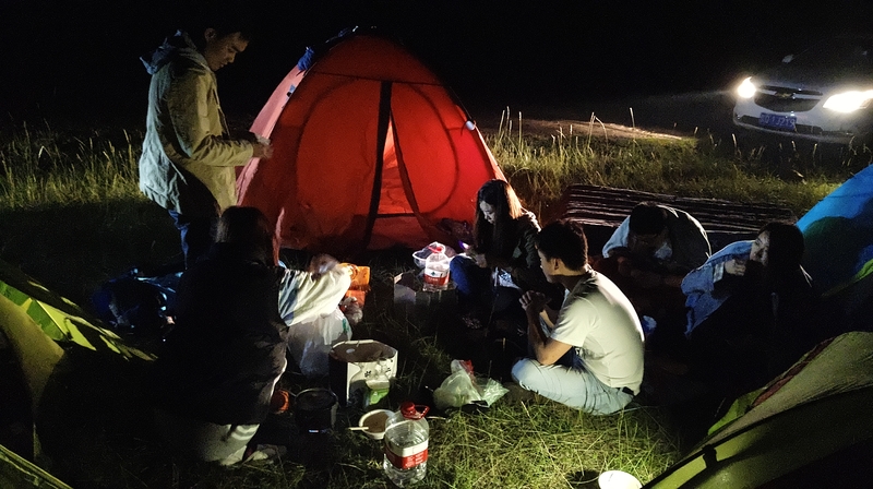 黑夜中找了个草地扎营,已经深夜一点多了。