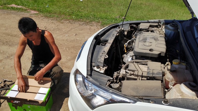 翌日一早发现,我们找的地还不错,飞飞飞机,飞飞风筝,正打算撤离的时候,结果发现,前晚大灯时间开太久,车没电了。也是尴尬,只能就近找人搭线了。