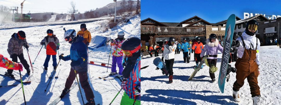 高颜值专业雪具因有尽有,可自愿通过团队优惠租用。全套雪具雪服送到雪场门口,免费送取。