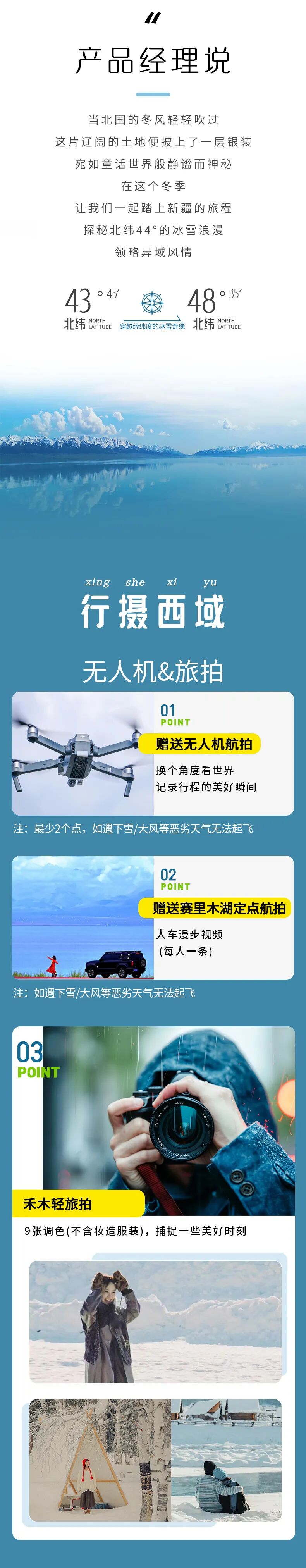1. 赠送禾木轻旅拍(9张调色,不含妆造服装)。