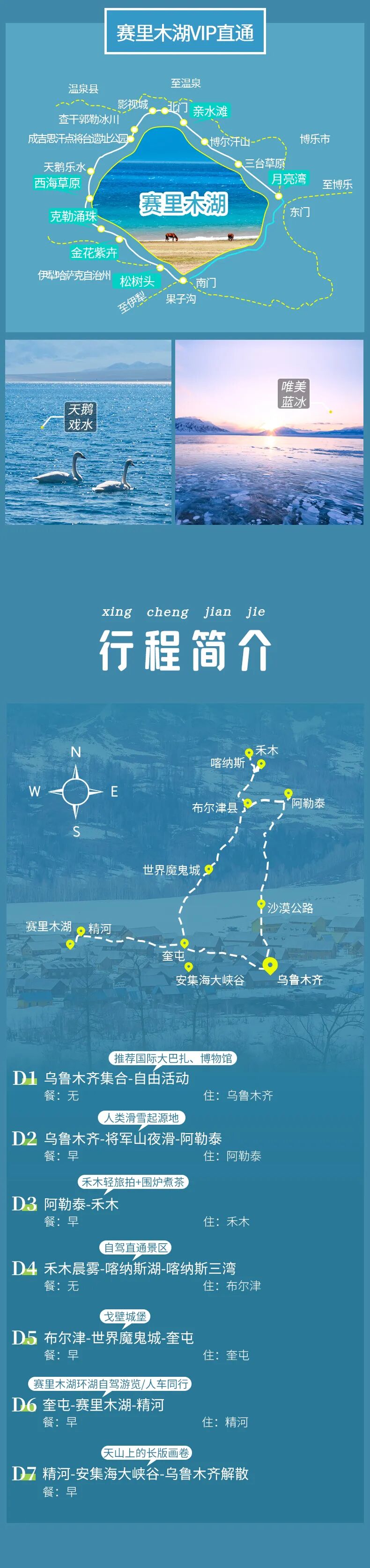 1.2米以下为儿童,含车位费、滑雪、赠送项目、保险、免门票、酒店免早餐,不含酒店住宿,超高但未满12周岁需补门票410元+早餐费240元(禾木不含早餐),如需占床补床位费1000含早餐。 |