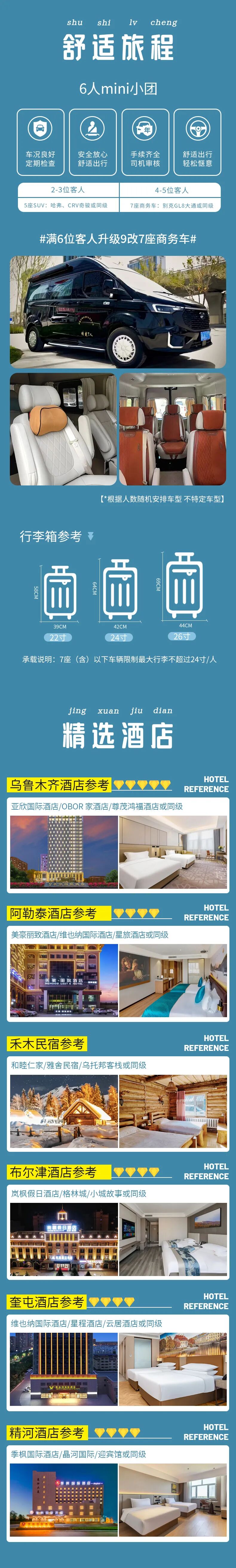 3、用车:2-3人用5座SUV,4-5人用7座商务车,6人用9改7座商务车(小团副驾驶及前后座位置需要轮流乘坐,望悉知);