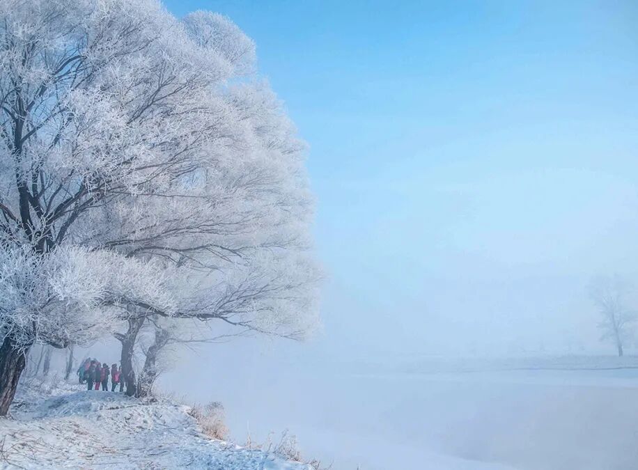 06:30 前往抵达【雾凇长廊】,这里不是景区,属于松花江畔的一座江边公园,每逢冬季,松花江畔的气温很低,水蒸气凝固在树上,从而形成雾凇。