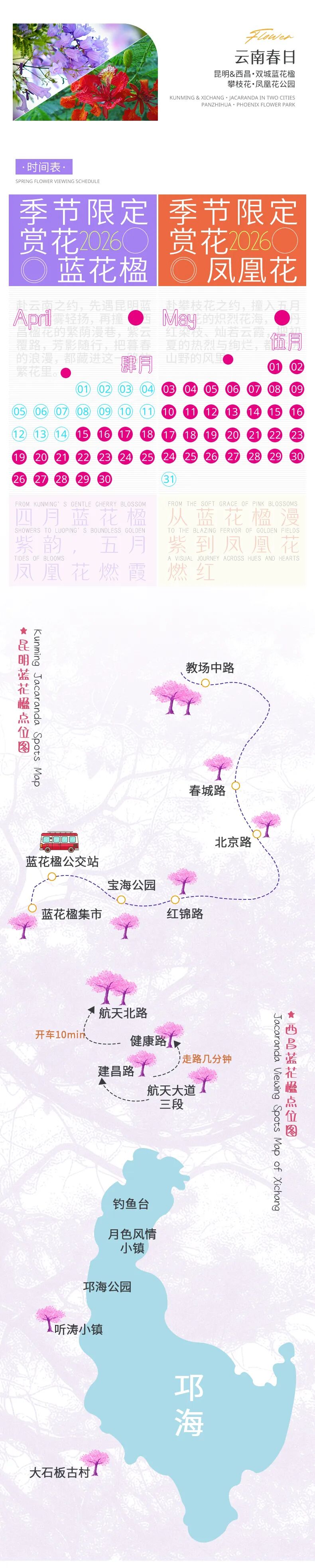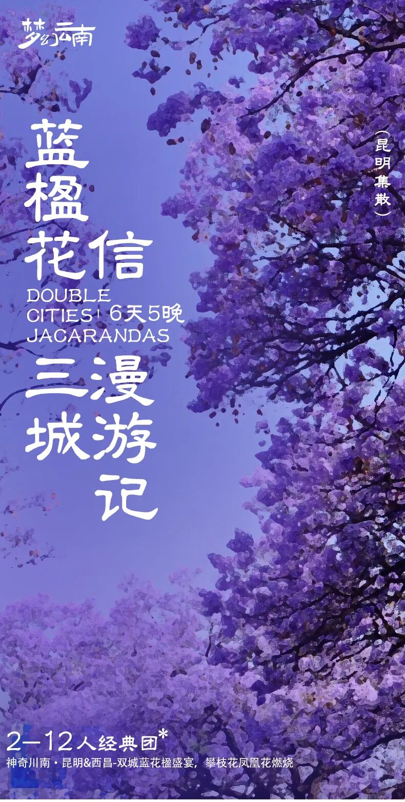 6天5晚|一年一度三城花季漫游,从云南跨越四川,昆明&西昌双城蓝花楹盛放,攀枝花凤凰花如火灿烂,索玛花在山野盛放,元谋土林大地奇观,小众浪漫之旅。