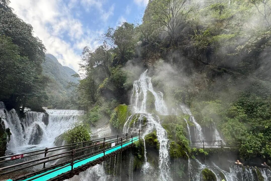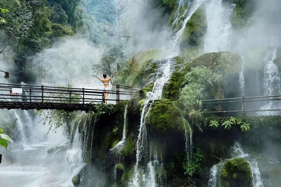 11:00 乘车抵达【邛海螺髻九十九里温泉】,这里有着世界最大的温泉瀑布,数十个温泉瀑布形成宽达 200 余米的瀑布群,场面壮观。温泉富含多种矿物质,水温常年维持在 40℃ - 50℃,这里不仅有世界最大的温泉瀑布,还有丰富多样的玩法。你可以在瀑布下感受温热的泉水从头顶倾泻而下,如同一场天然的 SPA,水流的冲击能有效舒缓肌肉的紧张。沿着蜿蜒的步道前行,还能发现散布在山间的各种特色泡池。温泉周边的自然风光也不容错过。沿着山林间的小径漫步,呼吸着清新的空气,欣赏着茂密的植被和偶尔出现的野生小动物,享受与大自然亲密接触的美好时光。
