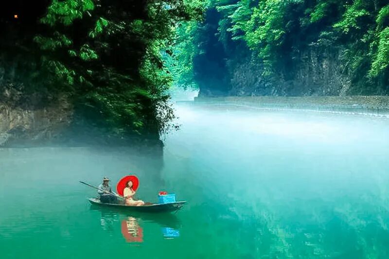 我们徒步至峡谷底部,乘坐网红「漂浮小船」之旅,悠闲地荡漾在碧水青山之 中。漫山遍野的映山红,倒影在河面的一艘艘木栈,漂浮在山水一体的清江河面, 水下鱼儿慢悠悠的游过船底,遗世独立的样子。快,抖音视频、朋友圈走起来!