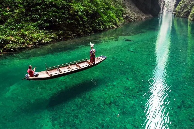 我们乘车前往【屏山峡谷】,屏山峡谷被誉 为“中国仙本那”,这里是恩施旅游必览之地。屏山四周峭壁悬空,碧水环绕,青 山翠绿,在峡谷中的水面游弋,抬头看去,四周峭壁耸立,溪流环绕。