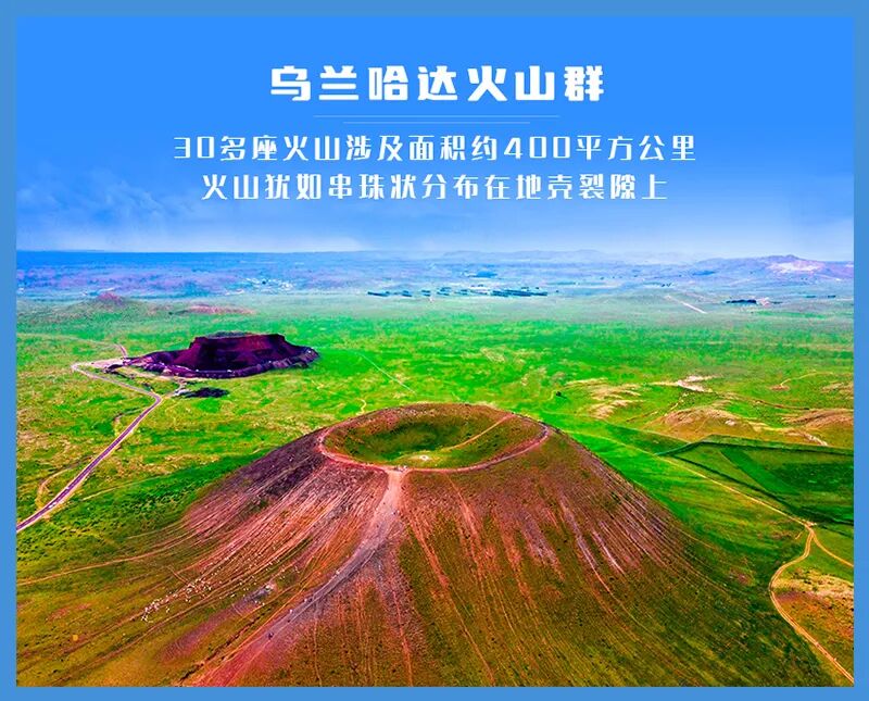 - 早餐后,我们集合前往乌兰哈达火山草原,抵达8号火山,稍适休整开始徒步。我们沿着8号(可登顶)、7号(可登顶)、6号、5号(可登顶)、4号(可登顶)火山徒步,全程约10公里,爬升约350米。
