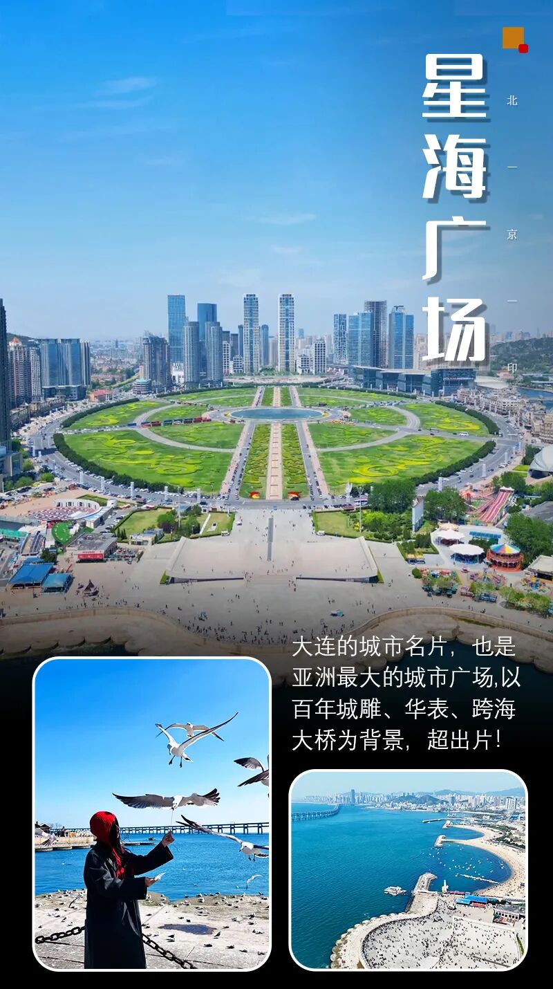 4. 星海广场(约 2 小时):亚洲最大城市广场,面朝大海,建市百年城雕。可喂鸽子、漫步海边、午餐在这里
