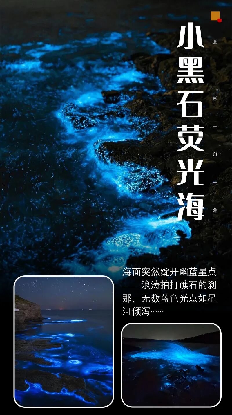 6.晚上自行前往中国五大顶级追泪地点 大连旅顺(大、小黑石)追 “蓝眼泪”。中国五大顶级追泪地点分别为:- 1. 福建平潭岛- 2. 广东南澳岛- 3. 广西涠洲岛- 4. 深圳西涌/惠州双月湾- 5. 大连旅顺(大、小黑石)。小黑石位于旅顺西北部,是小众荧光海滩(蓝眼泪)观赏点。春夏交替、水温适宜时,夜间海浪拍打礁石或搅动海水,会发出幽蓝微光,宛如星空坠落海面。