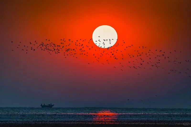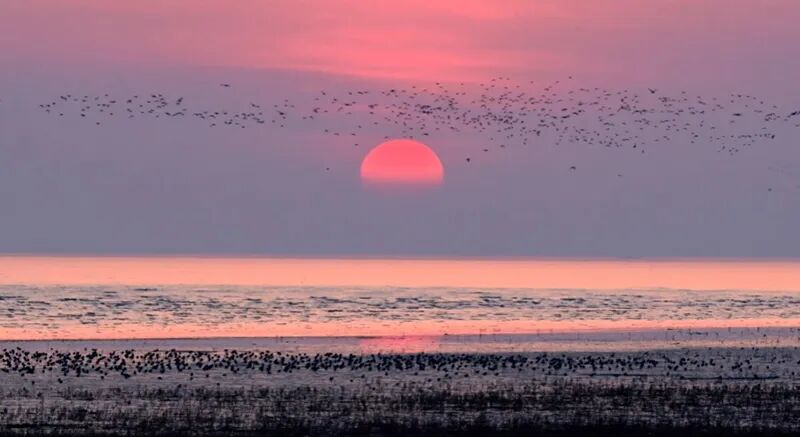 - 适时集合前往营口市。抵达营口后前往大河口湿地观看候鸟,夕阳坠海,在这里是中国大陆唯一能看到夕阳坠海+鸟浪同框的震撼场面。