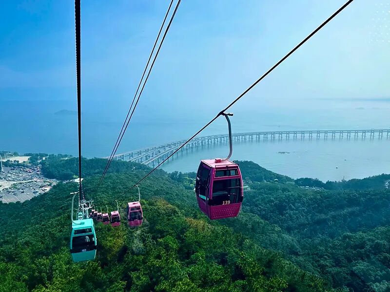 1、莲花山观景台(约 1 小时):大连市区制高点(海拔 259.6 米),360° 俯瞰星海湾、跨海大桥、星海广场及市区全貌。可徒步或乘索道上山,山顶观景台视野极佳,日出日落时分光影绝美。,在这里可以俯瞰跨海大桥全景。