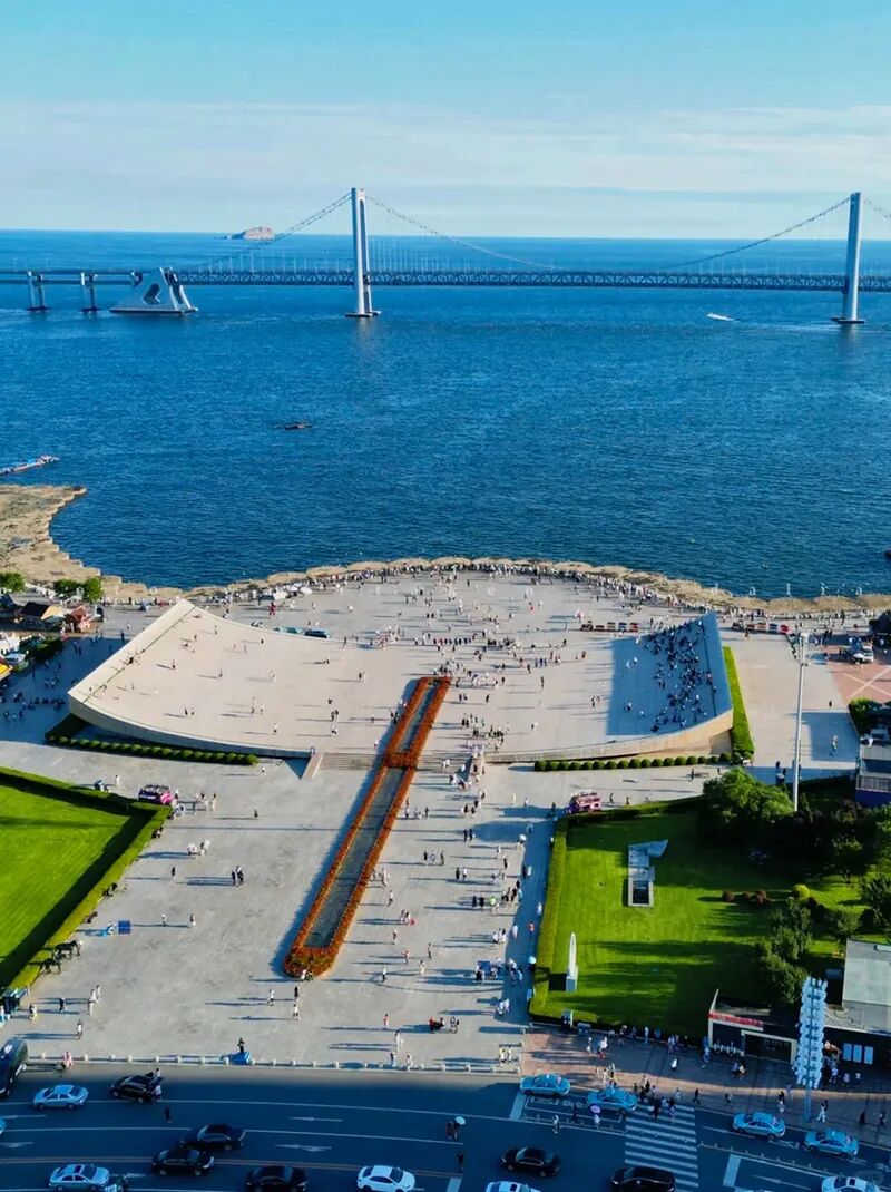 3、星海湾跨海大桥(约 1小时):中国首座海上双层悬索桥,全长约 6 公里,浅蓝桥身与海天相融。可在桥头观景台远观大桥雄姿,或步行 / 骑行专用步道,近距离感受海上大桥的壮阔。我们不用走完,往里走几百米即可,慢走、拍照、吹海风预计用时约1小时。