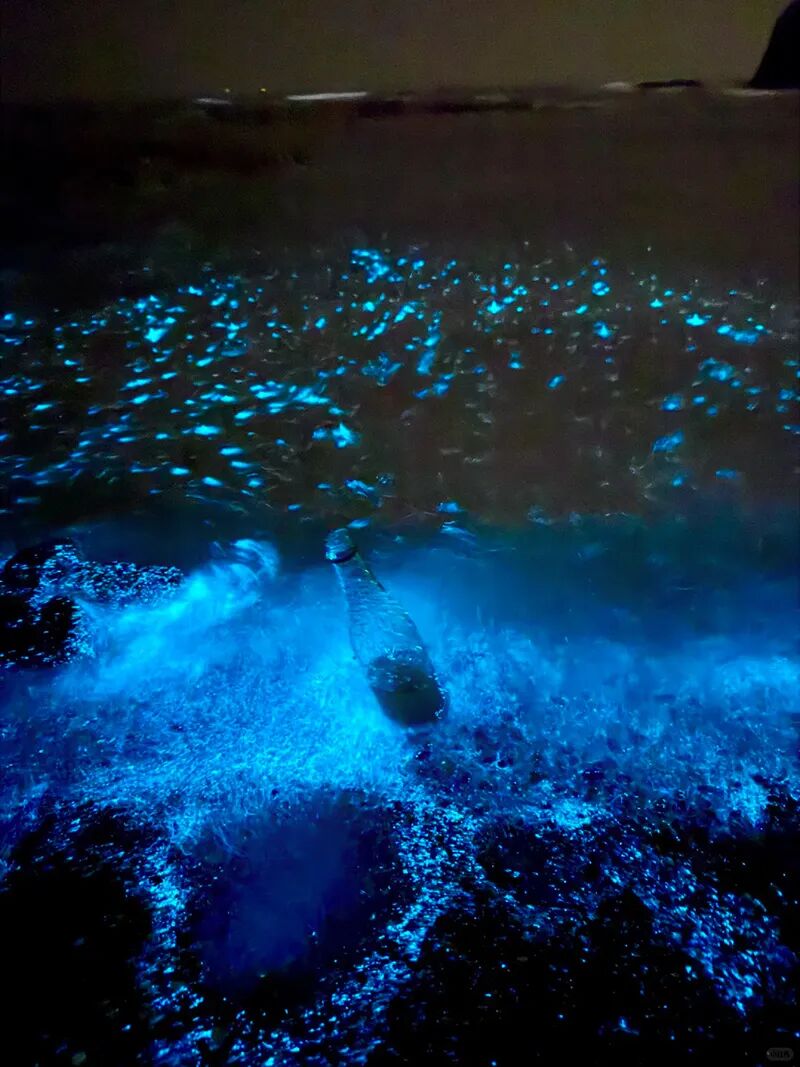 蓝眼泪为浮游生物发光现象,受水温、潮汐、天气影响,出现概率不定。海边礁石错落,夜色中蓝光闪烁,浪漫神秘,是大连独特的自然奇观与网红秘境。