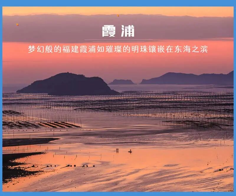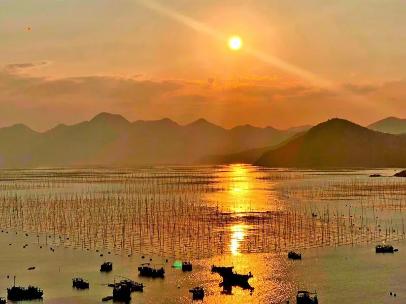 - 清晨 想看日出的朋友,自由结伴打车前往北岐滩涂拍摄海上日出,朝霞映照下的滩涂风光及渔民劳作场景,北歧是福建霞浦著名的日出点,吸引着大量的摄影爱好者,有名的是虎皮样的滩涂斑纹和满滩满海的竿影、人影和船影。涨潮时海上忙碌的船只、波光粼粼的大海和远处山影岛屿浑然一体,蔚为壮观。退潮时,海滩的纹理渐显秀质,劳作的渔民游动在虎皮滩上,使得镇滩涂更具有韵律美和动态美。
