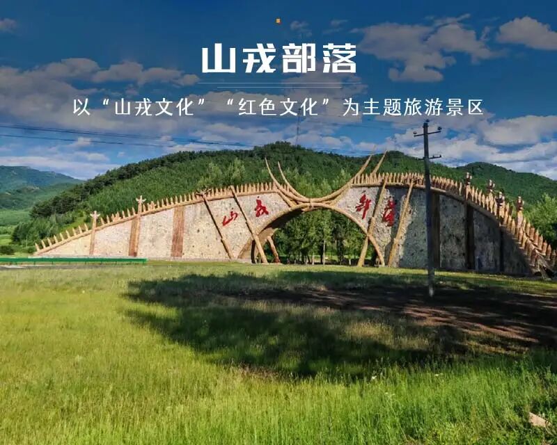 山戎部落以“山戎文化”、“红色文化”为主题,以自然地质奇观、野生花草树木,人文景观为背景,景区内设有朝鲁寨、努鲁寨、冰石河、十八湾四大景圈,内含停车场、 石栈道、 木栈道、 绳索吊桥、玻璃栈道、 观景台、狩猎场、山戎广场、 山戎餐厅、山戎酒店、四季垂钓园、 人工湖4处。