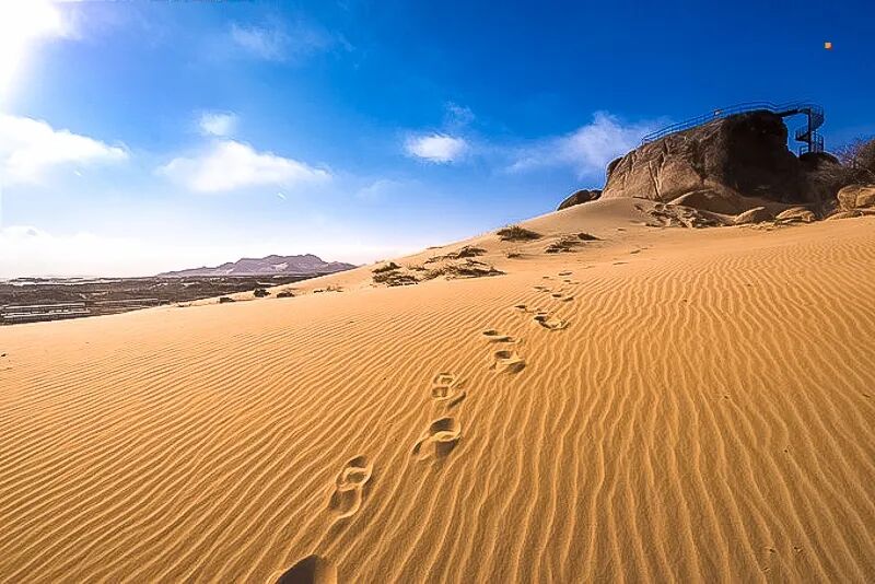 这里的沙漠、沙湖、沙松和响沙是科尔沁沙地的一部分,有“八百里瀚海”之称。景区内草原与茫茫无边的科尔沁沙地相连,沙地中有一眼清泉,在沙漠中积水成湖。湖面很大,湖中有十几座沙岛,岛上有草、草中有鸟,十分独特,《后会无期》、《万物长生》等热门电影都把取景地选在了这里。