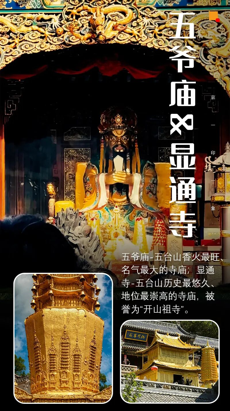 五爷庙*(万佛阁)是五台山香火最盛的寺庙,主供“五爷”(广济龙王菩萨),以“有求必应”闻名,农历五月十三香客如潮,许愿需空腹且三年后需还愿。