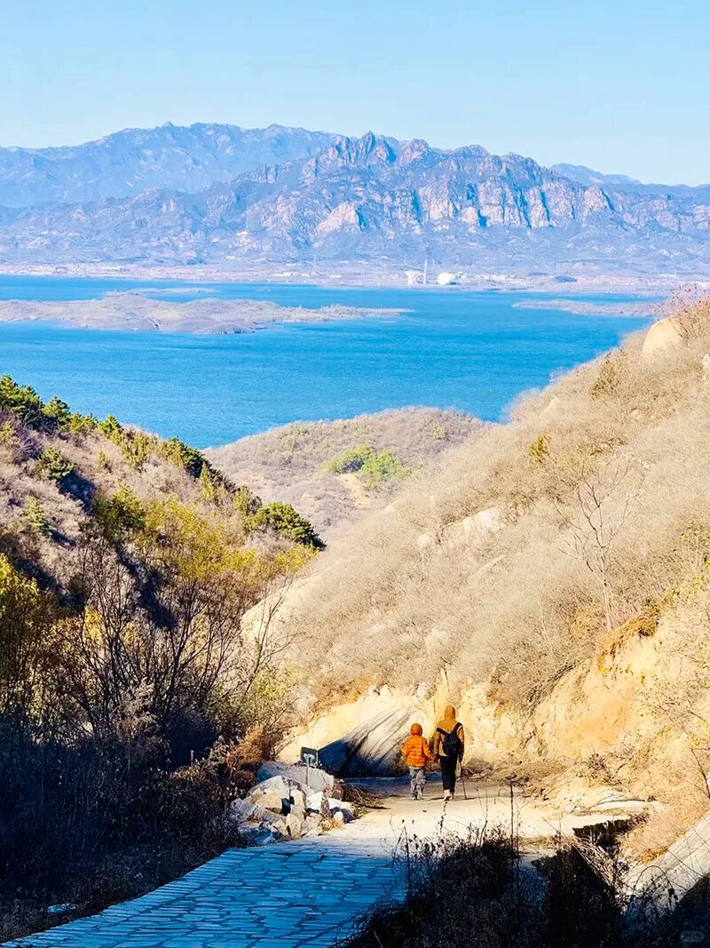 -下午适时前往青洞山三教寺徒步起点,在领队带领下开始徒步登山。 沿石板路徒步往返约4公里,约50分钟可登顶寺庙,寺庙的红墙配着蓝天也很好拍,寺庙后山的大石头也可俯瞰密云水库,拍照超出片!还有随处可撸的三花特工队超级可爱~ |